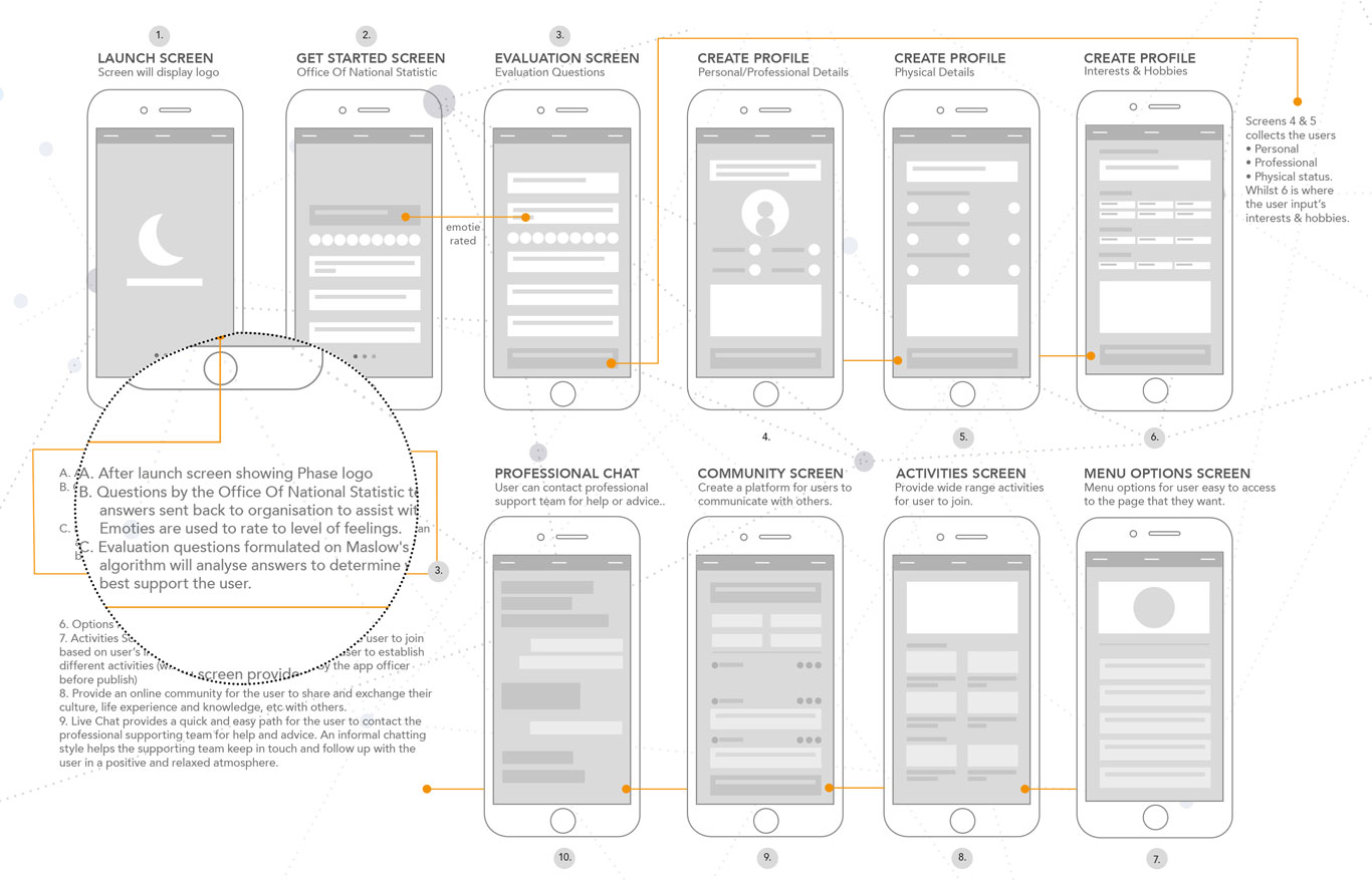 The Phase App is designed to represent a sanctuary that empowers users to enhance their quality of life by addressing loneliness with supportive resources. The app will provide users access to professional advice, counselling and educational materials, all grounded in Maslow's Hierarchy of Needs theory.